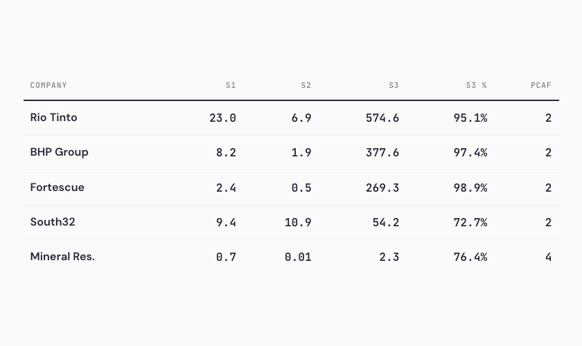 No formal Scope 3 reduction targets were returned for any of the five companies. The largest emitters in Australian mining have not set quantified targets where 95%+ of emissions sit.
