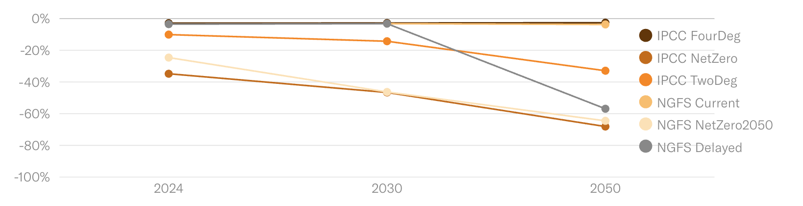 - Earnings risk for companies without credible decarbonisation pathways,
